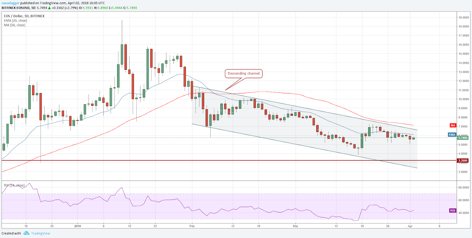 However, as the RSI is in the oversold territory, we might get a pullback, which will face resistance at the 20-day EMA and the downtrend line.