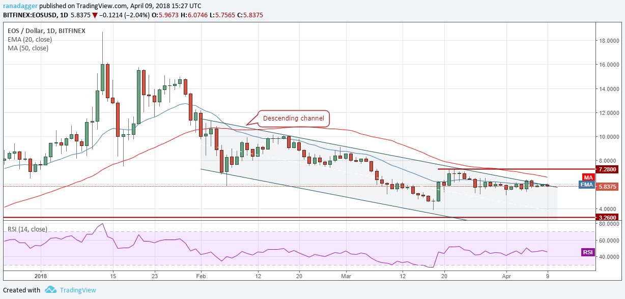 If the pair breaks out of the 20-day EMA, it can rally to the resistance line of the descending channel. The digital currency has been trading inside the channel since early January of this year. Hence, a break out of this will be a significant event and will signal a change in trend.