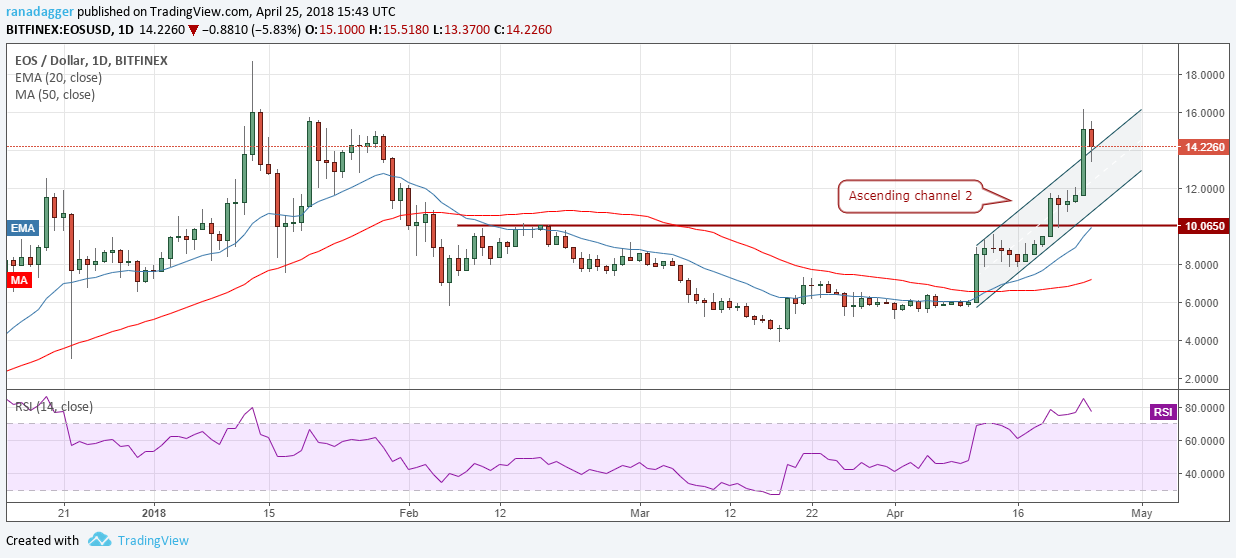 attempted to resume its up move on April 24 but failed. Along with the other cryptocurrencies it has also given up ground today. Currently, it is trying to hold the trendline support. If the support holds, we should see another attempt to rally to $1.08 levels.