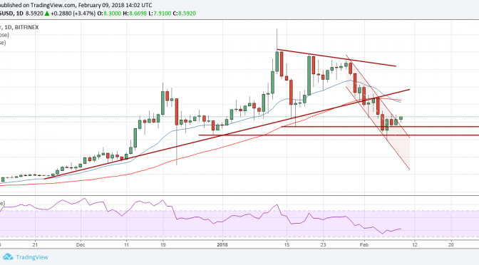 has broken out of the descending channel, which points to a waning bearish momentum. However, it has been facing resistance close to the $8.97 mark for a couple of days. A break above this level is likely to propel the cryptocurrency higher towards $10 and then to $12.
