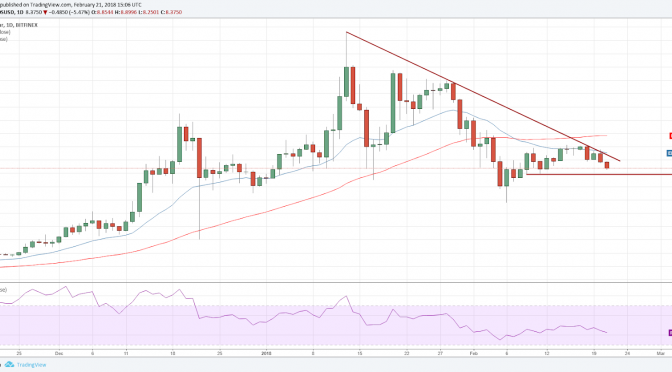 The pair has support at $7.91. If this support breaks, the price might fall to $7. On the upside, a breakout above $10.50 will indicate a possible shift in trend.
