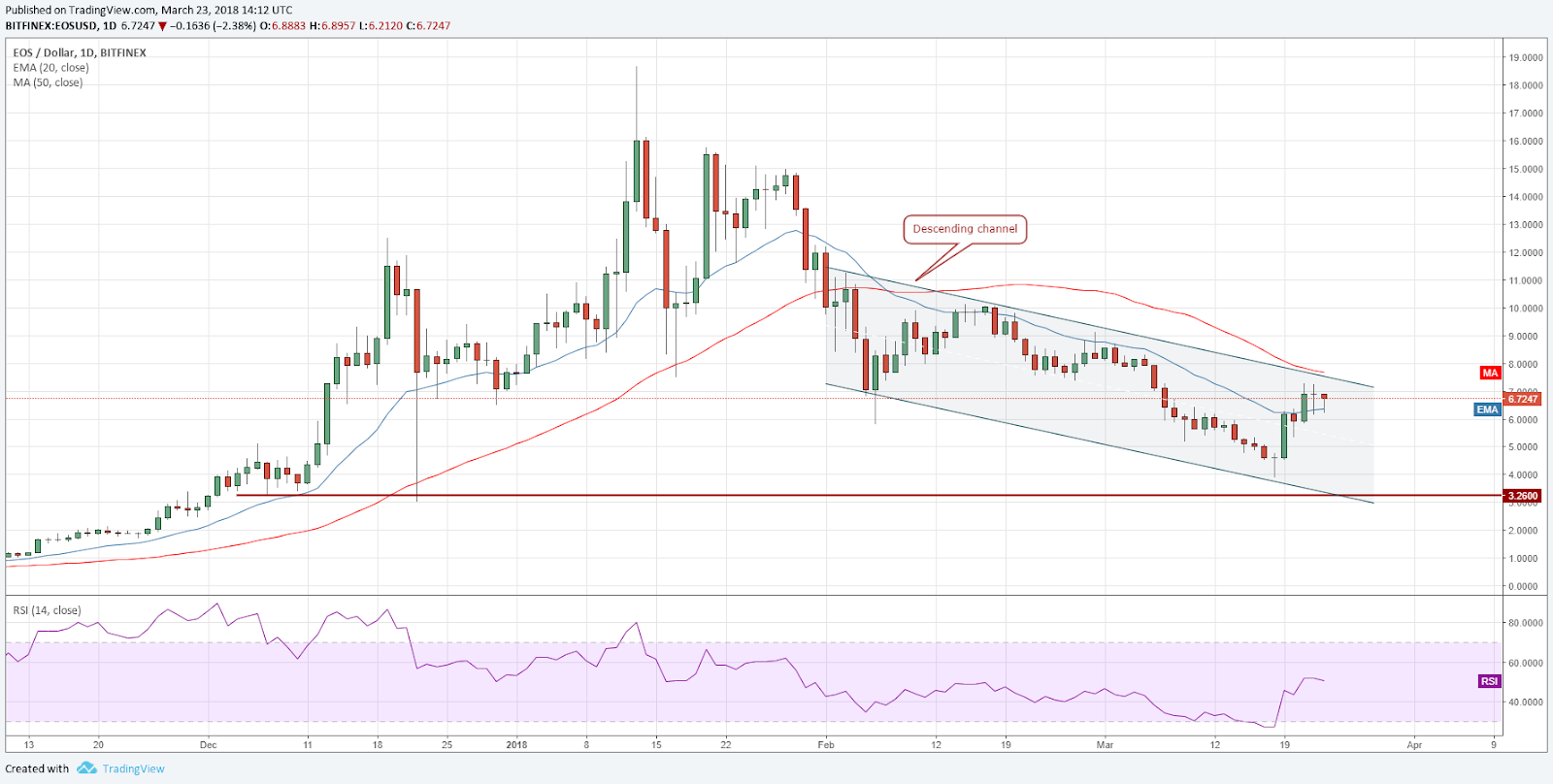 We went long on at $0.71, on March 19. Our suggested stop loss is $0.52, just below the March 18th lows. We took this trade because we anticipated a range bound action on the cryptocurrency.