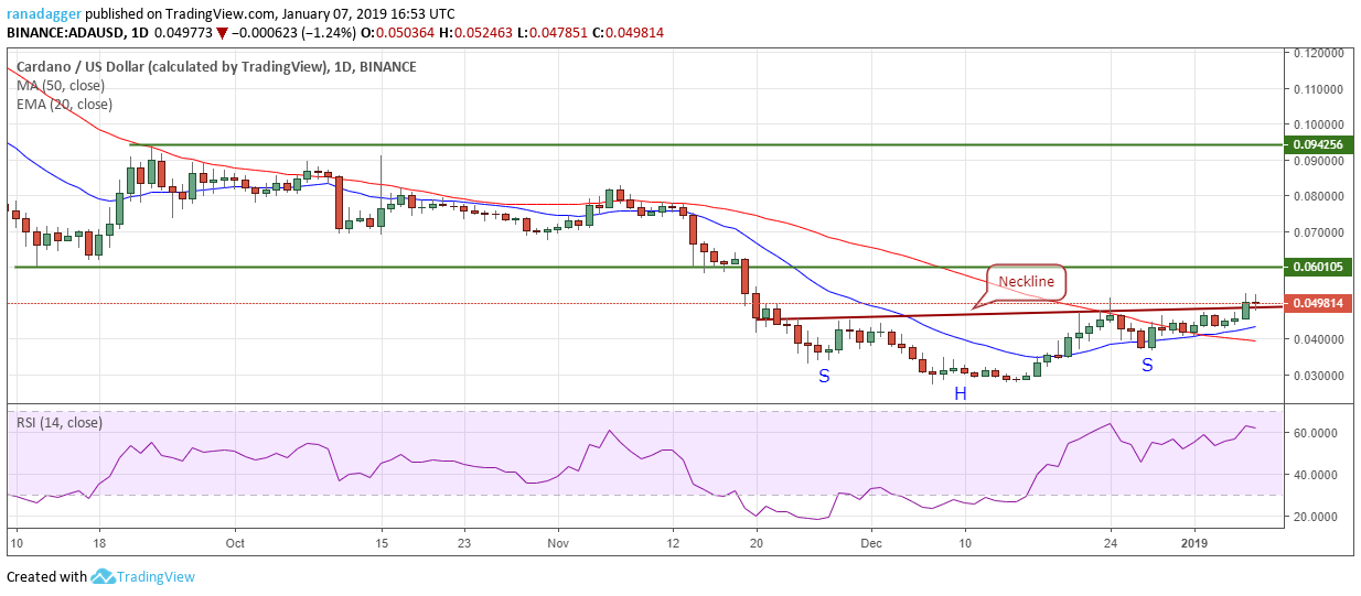 completed an inverse head and shoulders pattern on Jan. 6, as it broke out and closed above the trendline. Traders who went long on our recommendation provided in the previous analysis can keep their stop loss at $0.036.
