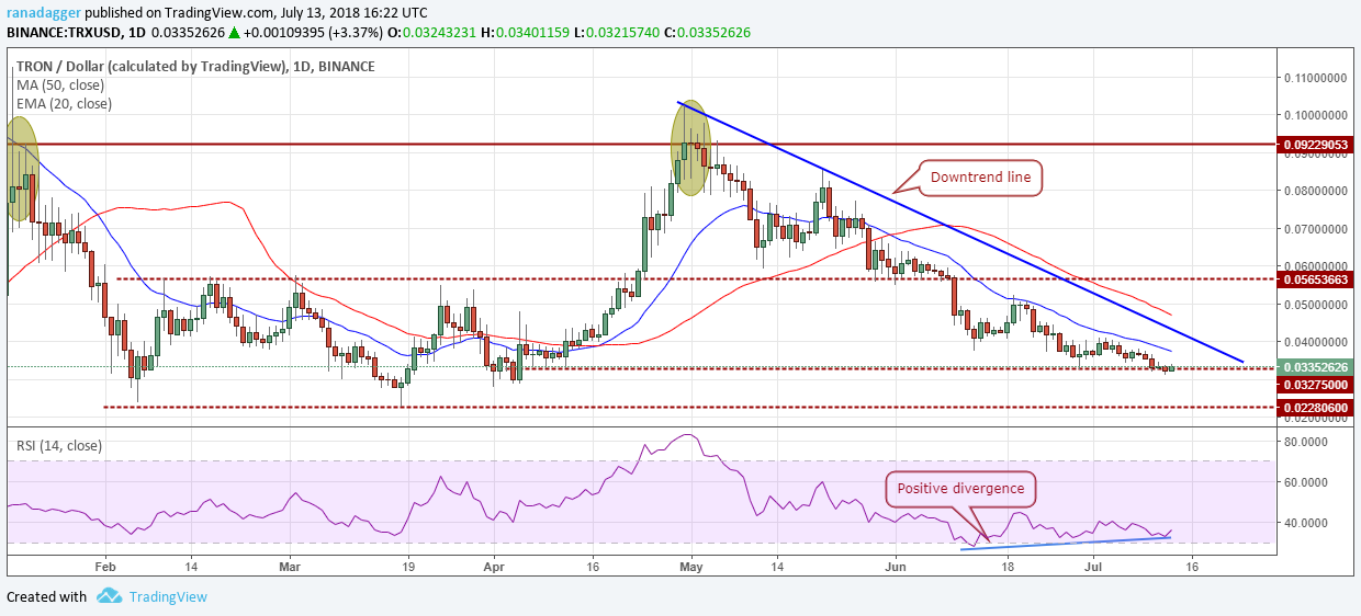 is trying to hold on to the $0.03275 level for the past three days but the bulls have so far been unable to force a pullback.