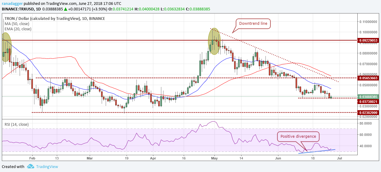 The bears are keeping up the pressure on . They managed to secure a close (UTC time frame) below $0.184 on June 26, which is a negative development. This shows a lack of interest among the traders to own the digital currency even at these levels.