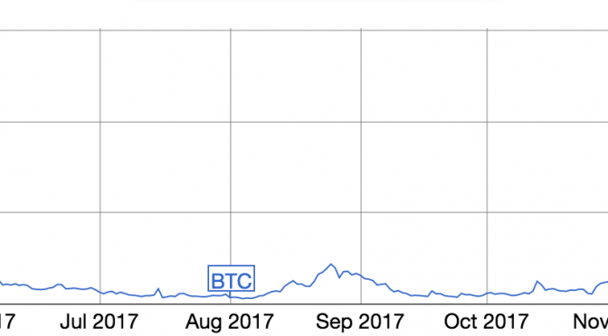Indeed, there’s been a downtick in outside interest in bitcoin. A lower price has less new investors searching for bitcoin on Google and coming in to buy and trade the cryptocurrency.