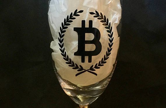 This gold stemmed wine goblet is perfect for any crypto currency lover. Holds up to 18.6 US fluid ounces. A staple for any bar, She Shed, Man Cave, or kitchen cabinet.