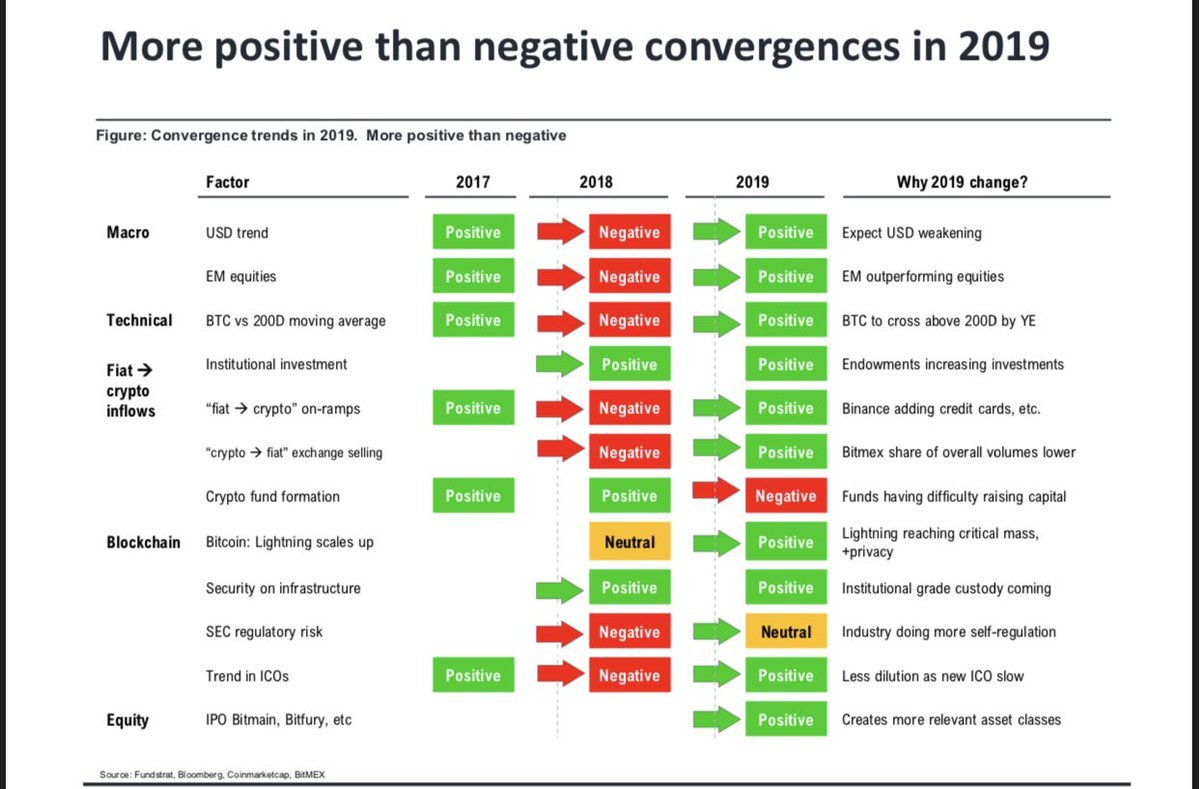 Some of these factors included the US Dollar, EM, and bitcoin Technicals, among others. The US Dollar, according to Lee, will weaken over the course of 2019 due to various reasons like QE by the Fed, and debt reaching an all-time high. Emerging Market [EM] was a headwind in 2018 and is now starting to act as a tailwind for bitcoin as EMs are outperforming equities.