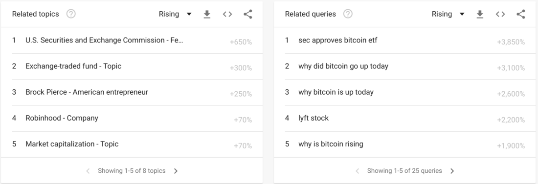 A similar trend revival was seen on , the world’s biggest search engine by volume. On the day bitcoin surged, its keyword topped to its weekly best. Interestingly, Google users queried the most about an April Fools’ Day rumor saying that the US Securities and Exchange Commission had approved the first ever bitcoin exchange-traded fund (ETF).
