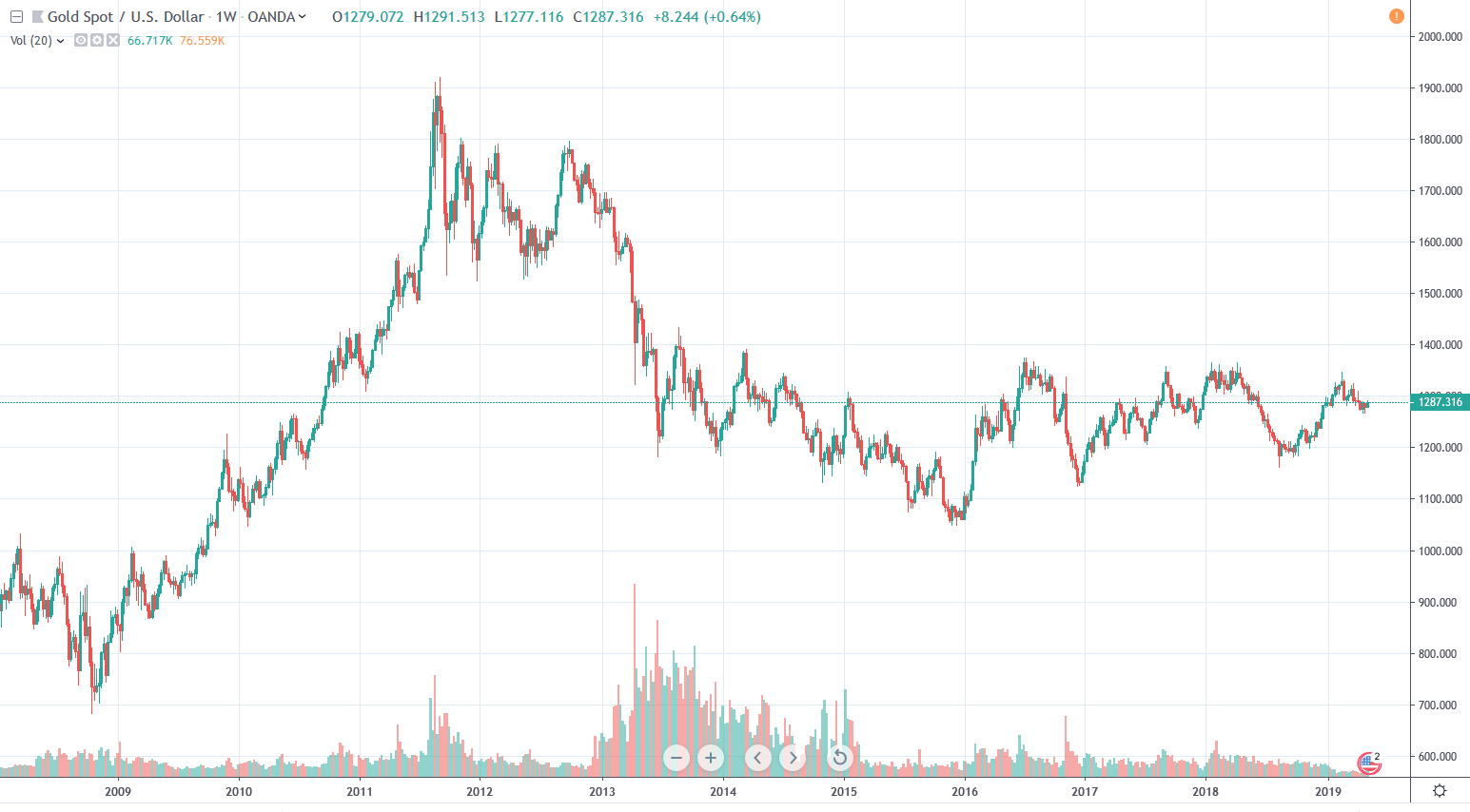 Gold’s 10-year returns pale in comparison to the stock market – much less bitcoin. | Source: TradingView