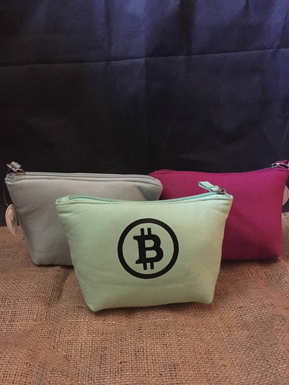 The fully lined cotton canvas zippered bag contains a heat transfer vinyl bitcoin decal & is pressed with a high quality heat press. Wipe clean with soap and water.