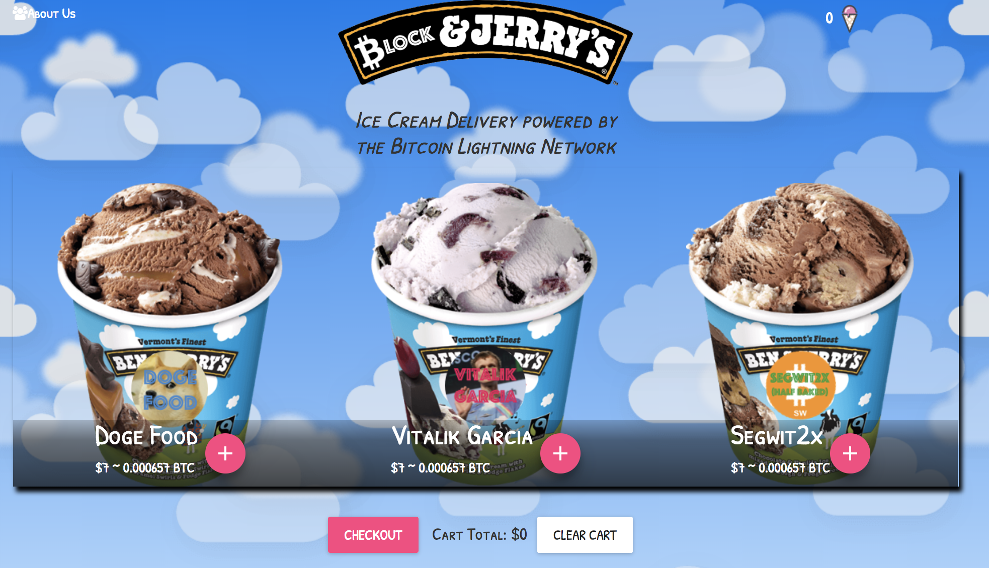 Ice cream names such as “Doge Food,” “Vitalik Garcia” and “Segwit2x” further show that the website is catering to a niche crowd.