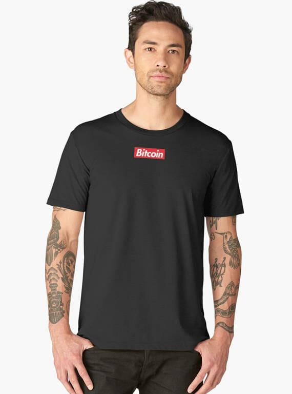 bitcoin has exploded in the past few months, as it has gone mainstream. The hype behind bitcoin is similar to the hype behind the streetwear brand, Supreme. Popularized by Supreme, the box logo is imprinted over a bitcoin logo.