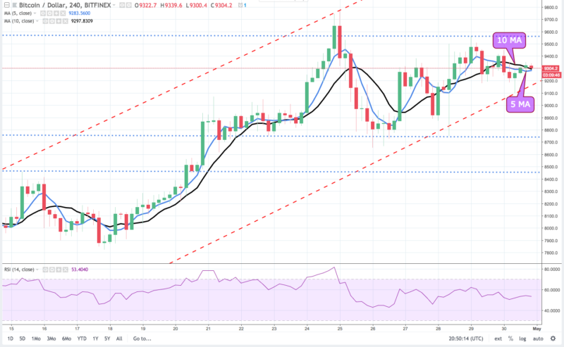 Again, the underlying bullish trend appears secure as the 4-hour chart shows BTC continuing to trade in the ascending channel and a similar set up can be seen with the 5 and 10-day MA indicating further range-bound trading in the short term and an eventual breakout once BTC holds gains above $9,500.