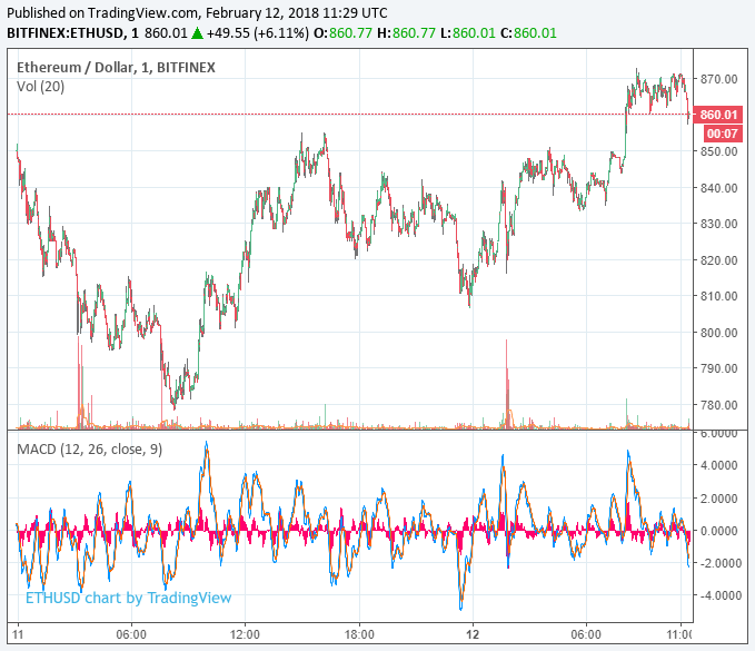Monday’s market movement also dealt the a winning hand, and the second-largest cryptocurrency rose by six percent to $860. Ethereum currently has a market cap of $85.1 billion, which places its market share at 19.7 percent.