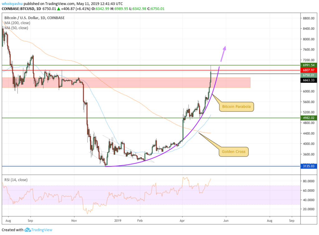 bitcoin PRICE PARABOLA FORMATION | SOURCE: TRADINGVIEW.COM, COINBASE