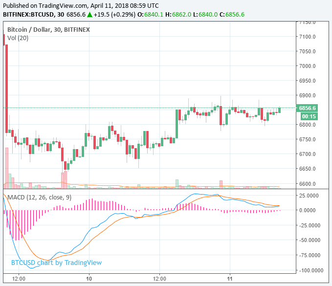 The bitcoin price has been relatively stable over the past 48 hours, in the $6,800 region. After a minor drop from $7,100 to $6,700, the bitcoin price has been able to sustain its resistance level, rebounding from its decline.