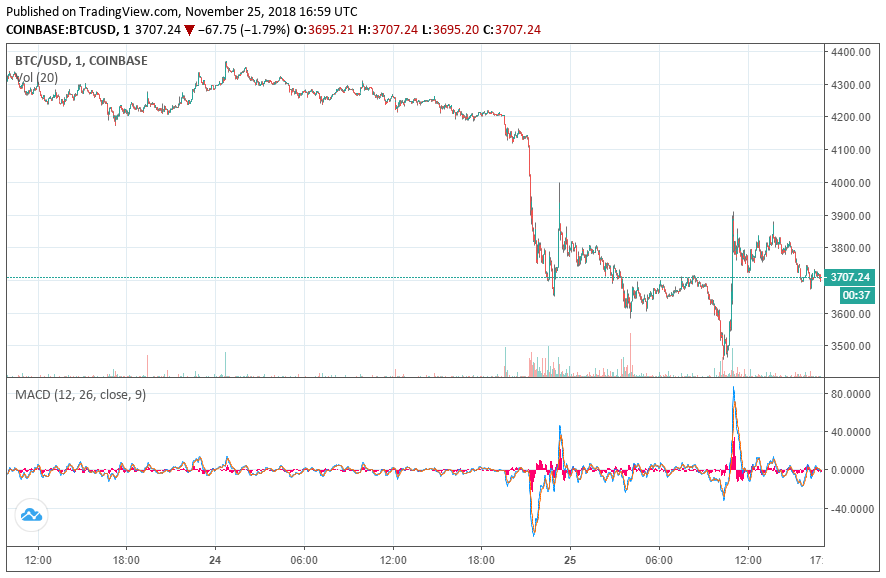 On November 23, when the bitcoin price dropped to $4,100 for the first time in 2018, the volume of BTC was still relatively low at $5.1 billion. In the past week, bitcoin has experienced in the year without the presence of large sell orders from bears.