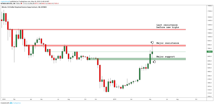 Crypto investment guru DonAlt predicted a similar future for bitcoin. The analyst noted that the asset was looking to close above a substantial resistance area, as shown in the chart below. Nevertheless, he said the bitcoin market would remain bullish as long as it holds above $6,400, a level with strong credentials as resistance during bitcoin’s uptrend sentiment.