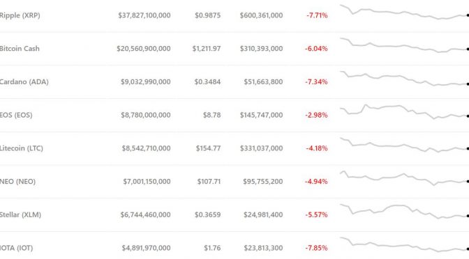 The altcoin markets glowed crimson on Tuesday, as just a dozen of the market’s 100 largest cryptocurrencies managed to mount an advance against the US dollar. Of the few cryptocurrencies that did post a single-day gain, none ranks in the market cap top 10.