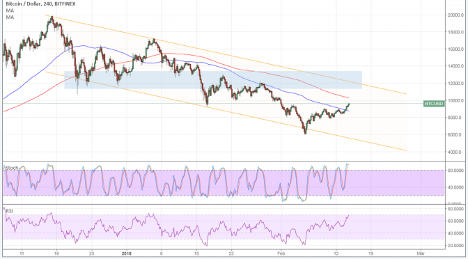 Price has moved past the 100 SMA dynamic inflection point, though, and is closing in on the 200 SMA dynamic resistance around $10,000. A break past this level could take it to the channel resistance at $12,000, which is also an area of interest.