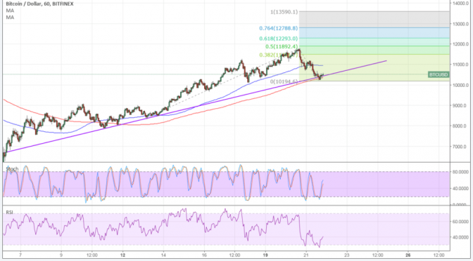 bitcoin price is finding support at the area of interest on the trend line, 200 SMA, and $10,000 mark so the rally might resume from here.