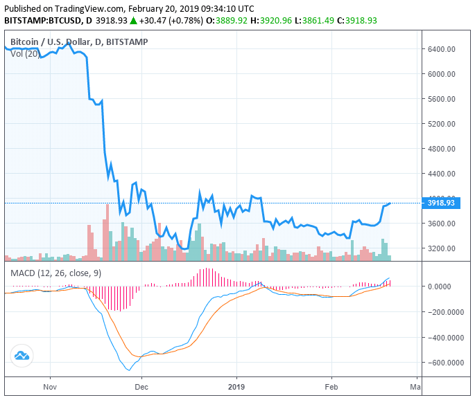 The time frame during which bitcoin can initiate a speedy rally from $3,900 to $4,200 remains unclear as the daily volume of the cryptocurrency market has noticeably declined since its initial spike on February 18.