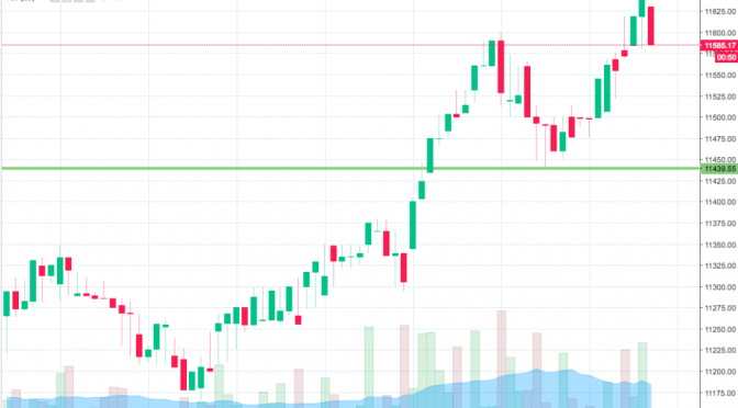 As the chart shows, then, the range we are looking at for the session today comes in as defined by support to the downside at 11439 and resistance to the upside at 11637.