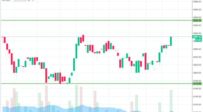 As the chart shows, the range that we are looking at for the session today comes in as defined by support to the downside at 8172 and resistance to the upside at 8332.