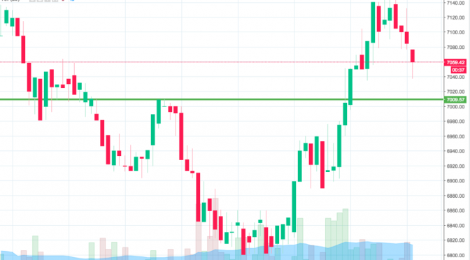 As the chart shows, the range that we are looking at for the session this evening comes in as defined by support to the downside at 7009 and resistance to the upside at 7148.