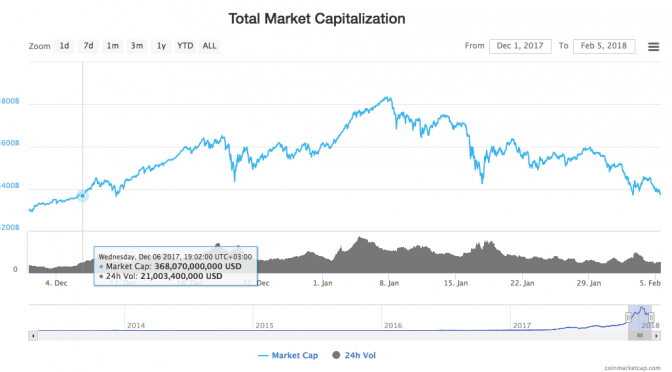 At press time, the total market cap according to CoinMarketCap was around $369 million, about the same level as it was Dec. 6, 2017: