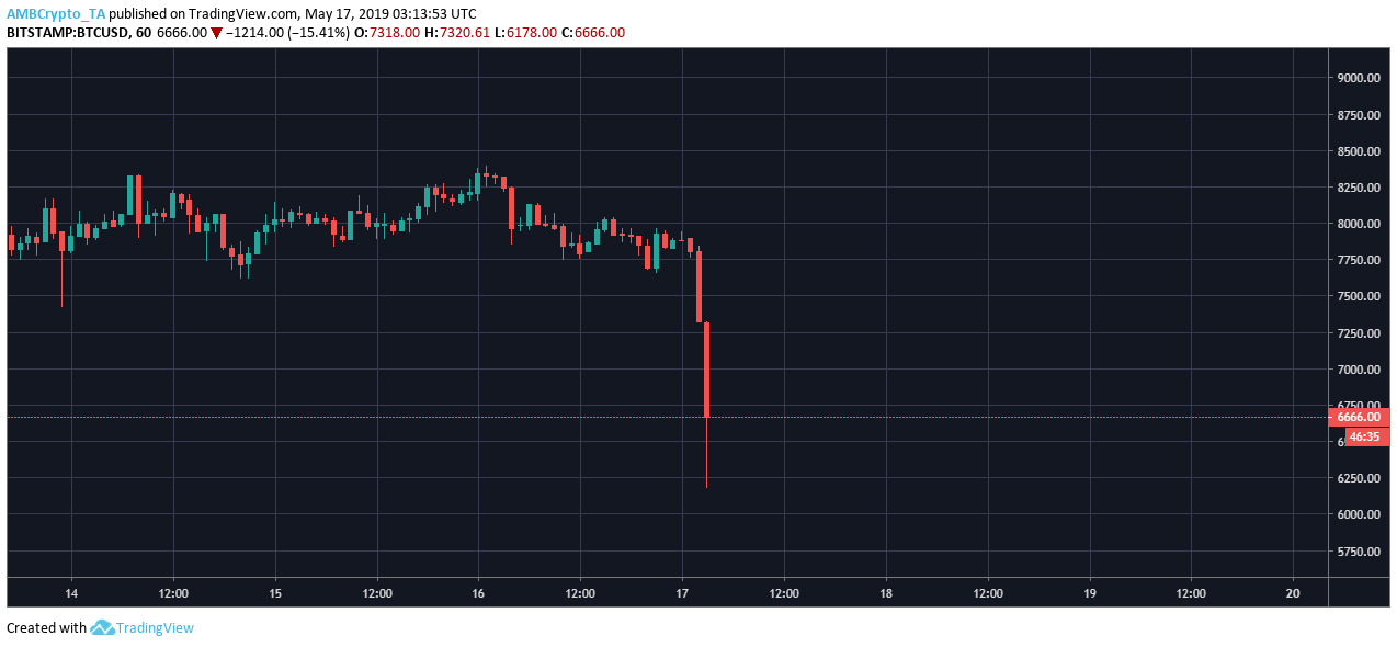bitcoin was recovering from the sudden dump, however, the extent of the dip in the price of bitcoin varied on different exchanges. On Coinbase, the price dipped as low as $6,600, on Bitfinex, it dipped to $6,990. The drop was perhaps the most on Bitstamp exchange as it dipped at $6,178.