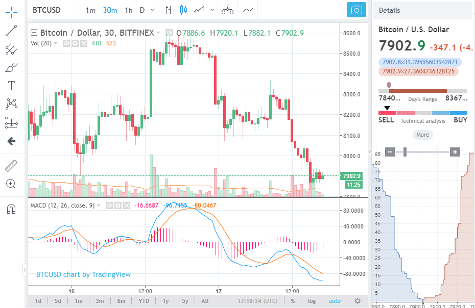Over the past 24 hours, the price of bitcoin fell from $8,600 to $7,840, by nearly $800. While trading volumes of most major cryptocurrencies across leading exchanges remain low overall, bitcoin’s daily trading volume has been relatively low, with sell volumes intensifying on exchanges like Bitfinex and Bithumb.