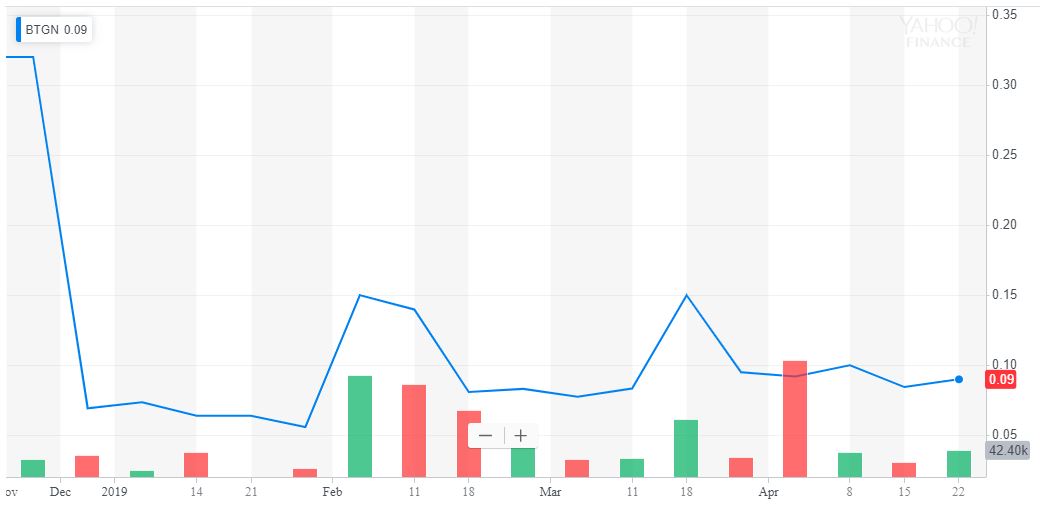 By : Shares of (BTGN), a little-known bitcoin stock, last traded at 9 cents. They will remain there until at least May 10 while the Securities and Exchange Commission launches a probe into the Oklahoma-based company’s finances.