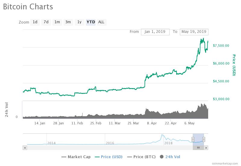 The bitcoin price has more than doubled year-to-date (source: coinmarketcap.com)