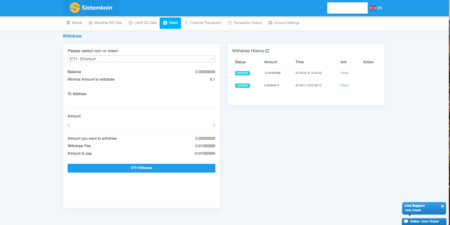 Sistemkoin is a medium-sized Turkish crypto exchange. At the present time, they have a volume of more than $150 million. We received a report from a Sistemkoin user, who will remain anonymous, who had a severe problem when withdrawing funds from Sistemkoin: they went to the wrong address.