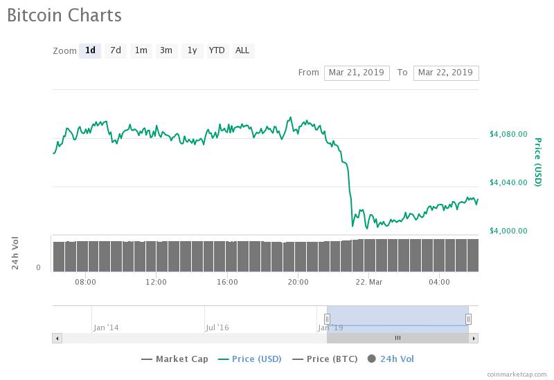 After achieving $4,097 in global average price according to data provided by Coinmarketcap.com, the bitcoin price has retraced to $4,027 and below the $4,000 mark in some major markets.