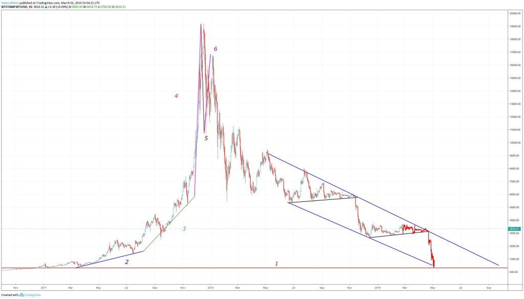 The whole thing started when upcoming crypto-analyst @Sawcruhteez tweeted . Unless breaks a year-long declining trend-line by May, he suggested, we could see a drop similar to last November. He included a chart of how this may look, with price down to under $1000.