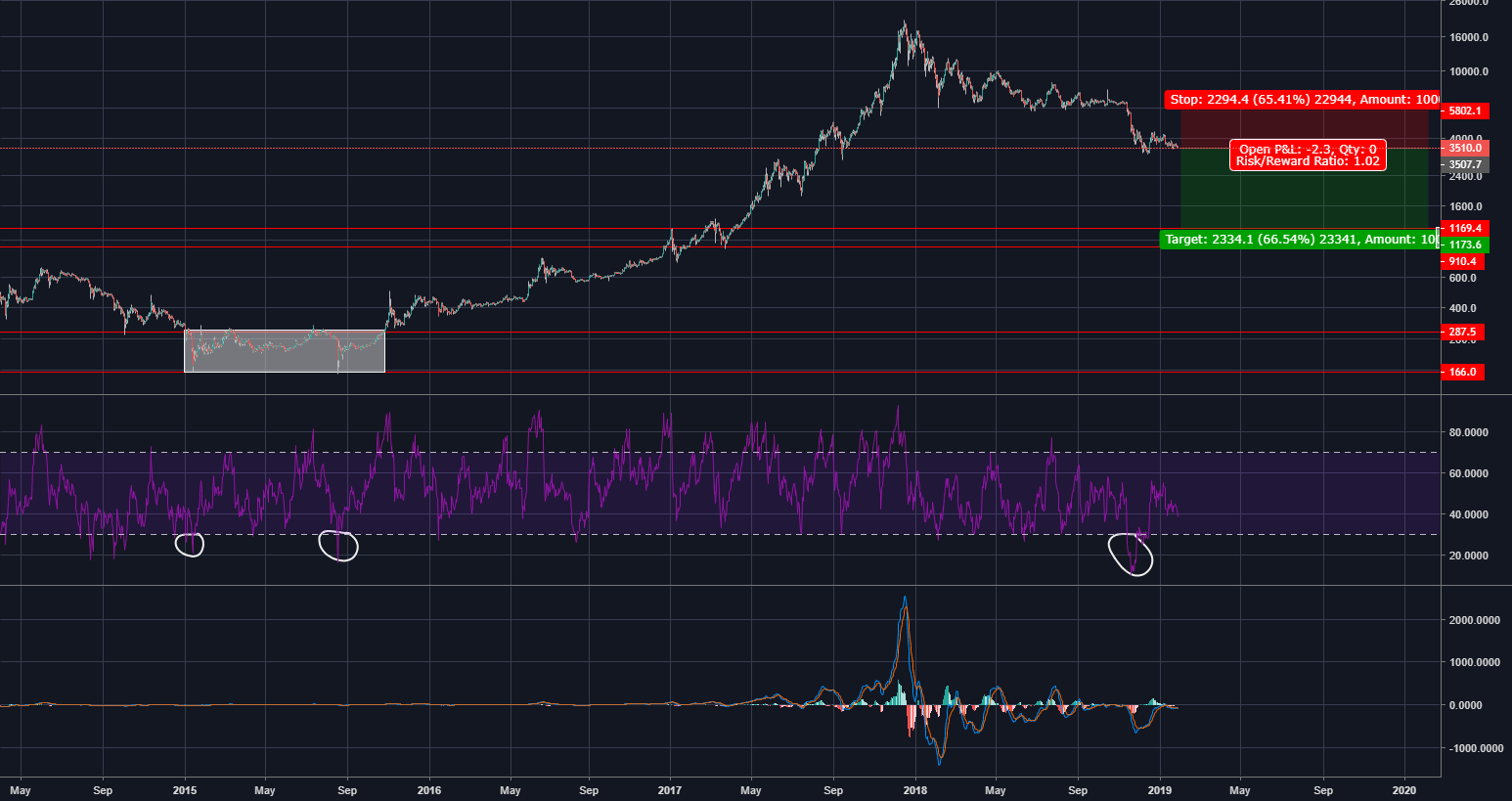 Hello traders, i’m here to give my insight into how this market looks to be playing out and what i expect moving forward in the future for this market. No i am not a bear, but i won’t ignore information the charts give to me. If you look left on the chart and you zoom out, you can see that in 2013 when we had our new All Time High from $200 level to ~$1200 you can see we came all the way back down to previous which occured 8 months earlier and even broke below and remained below it for some time before bottoming. I’ve marked 4 levels on the chart, which indicate our new at $20k, our previous at $1200, support below $1200 around $900, and the previous at $240. These levels i’m going to being playing close attention to for the next 6-12 months. Short term alts have been doing well as usual as every year, so id expect is on its way up as well in the short-mid term. I won’t be wound up in fervor until $12k is reached. I will be dollar cost averaging in the meantime loading up on satoshis anticipating the bullmarket until then, which i don’t expect until q3 2020.