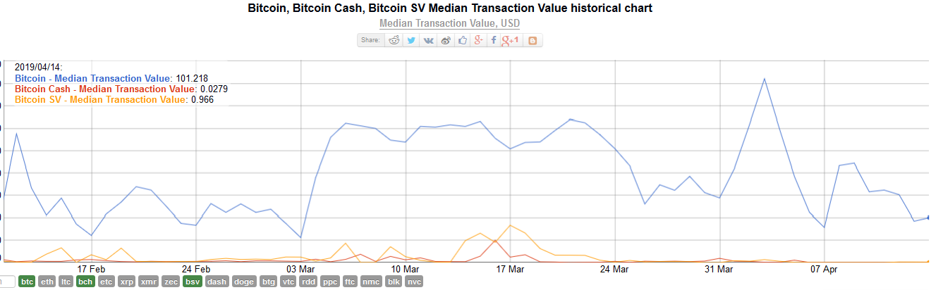 According to recent data released by bitinfocharts.com, the median transaction value witnessed between the coins is significantly different. As reported, the value of transactions observed on the bitcoin blockchain was significantly higher, when compared to transactions sent on the BCH and BSV blockchain.