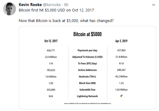 Kevin Rooke tweeted out the differences between the present bull run and the one witnessed back in 2017.