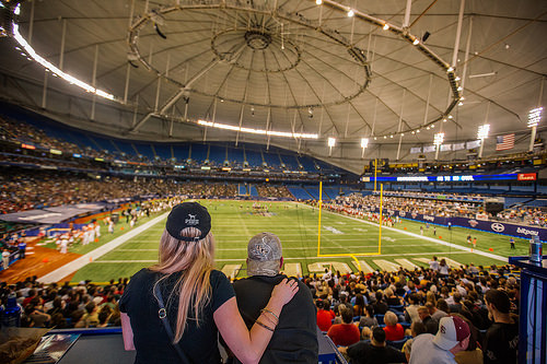 The 2014 St. Petersburg bitcoin Bowl game located at Tropicana Field between the University of Central Florida and North Carolina State University.