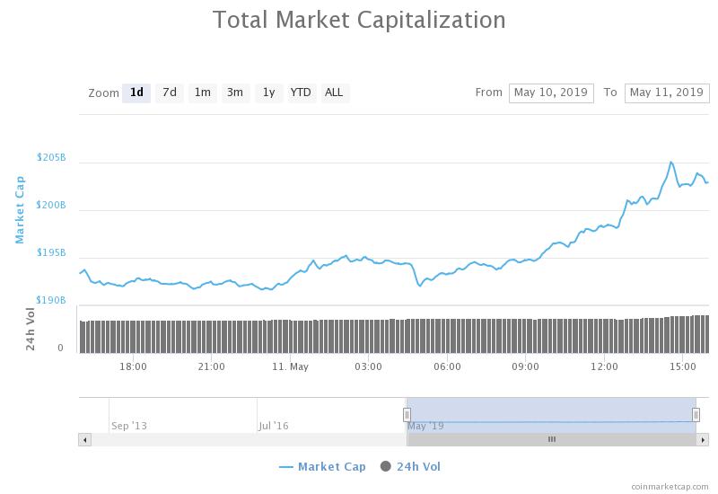 The valuation of the crypto market increased by more than $10 billion on the day (source: coinmarketcap.com)
