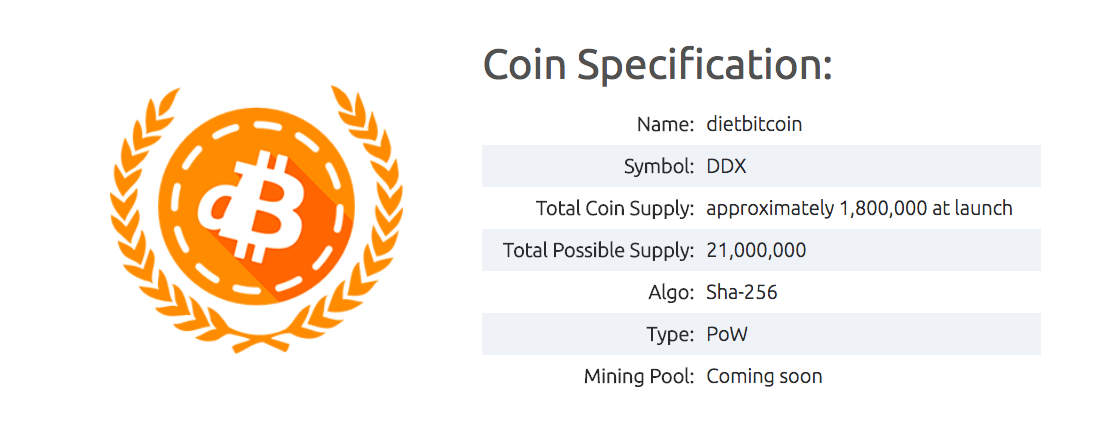 Dietbitcoin is currently running an (ICO) that consists of three rounds with 1 mln DDX coins as the cap for the crowdsale. The pre-ICO round 1 offers a total of 300,000 coins for $2 a coin, a sale price from the $50 originally listed, pre-ICO round 2 offers 300,000 coins for $100 each, and the ICO will have 400,000 tokens for $1000 each.