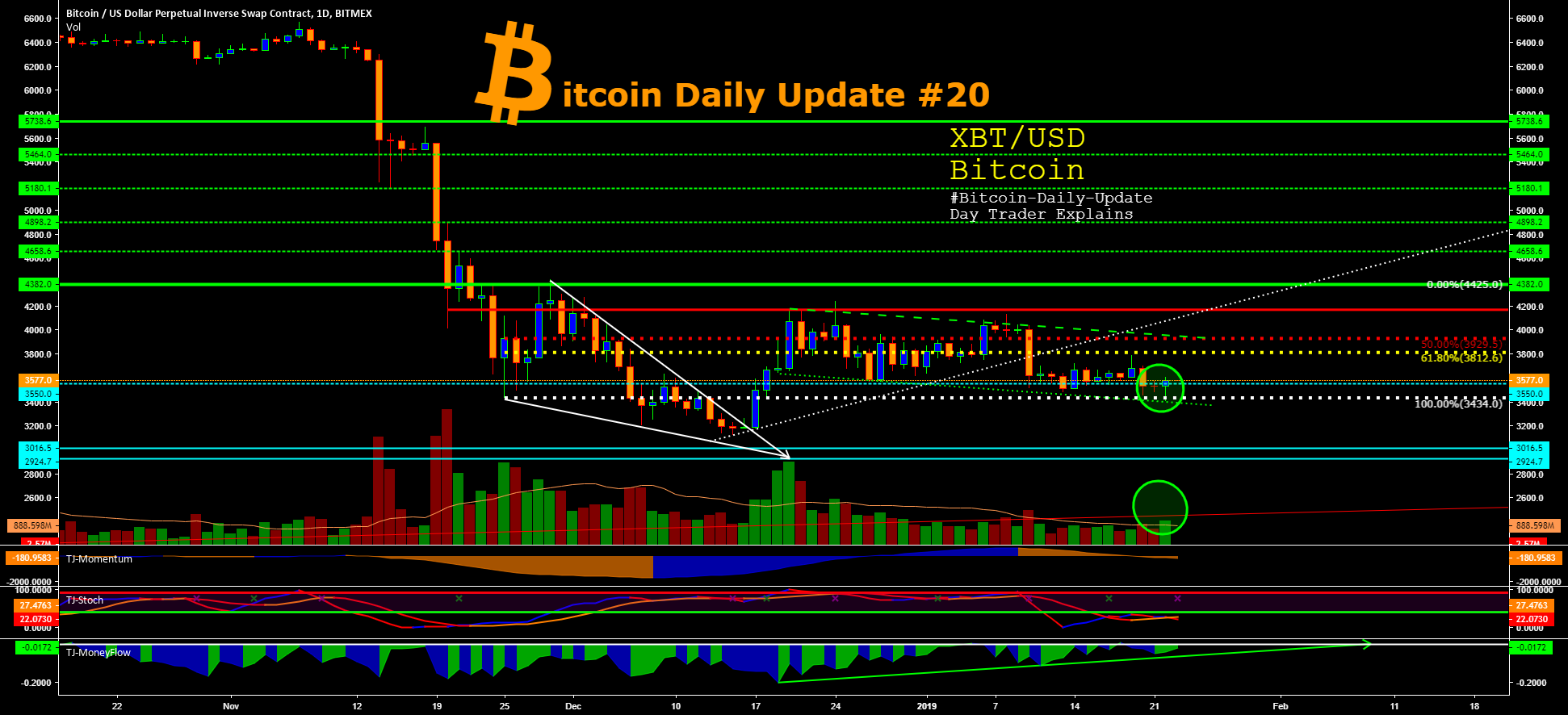 We saw in the last 24h quite a bit of movement. A very strong and steep wick to the low 3.4k has caught everyone’s attention today. We were seeing a crazy action and a break of 3434 which is the first time for this year. Nevertheless, it popped back up and formed a bull on all time frames giving the most single candle this year. The is obviously great and our still in place. Altcoins look all pretty much the same.
