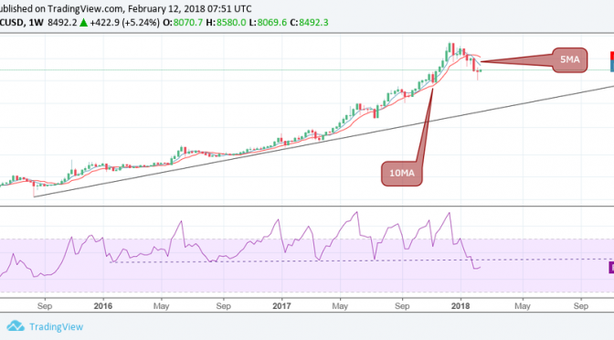 - The cryptocurrency may find it hard to hold on to gains above $10,000, courtesy of the bearish setup on the weekly chart. Rejection at the downward sloping weekly 5-MA and 10-MA could trigger a fresh wave of selling.