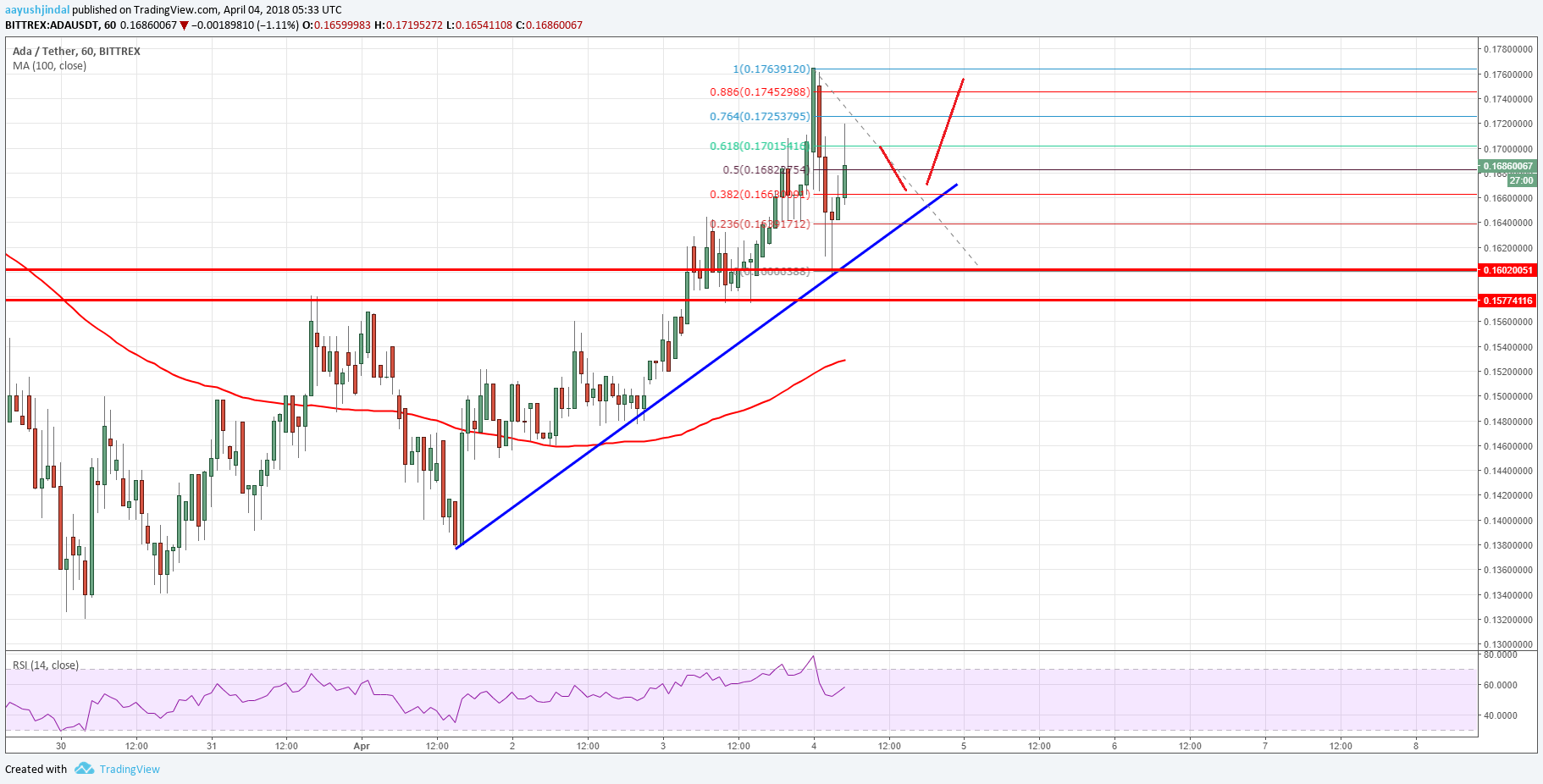 There was a started from well below $0.1500 in ADA price against the US Dollar. The price gained momentum and it was successful in breaking a few important resistances such as $0.1600. It even traded above the $0.1650 resistance and settled above the 100 hourly simple moving average. It traded as high as $0.1763 before starting a downside correction.
