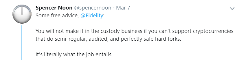 Now, let’s separate Fidelity’s concerns regarding ethereum from the potential problem that blockchain splits in general pose for custodians.