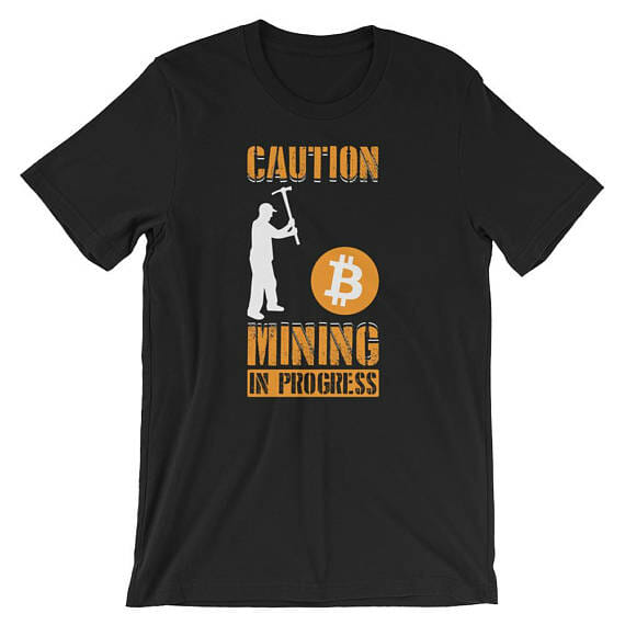 Caution Mining In Progress bitcoin HODL Shirt | Cryptocurrency Blockchain Digital Currency Coin T-Shirt | Digital Technology Crypto Short-Sleeve Unisex Tee.