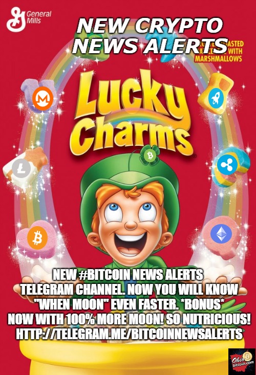 New #bitcoin News Alerts Telegram Channel. Now you will know “when moon” even faster. *BONUS* Now with 100% more moon! So Nutricious and Delicious! Chock full of 100% natural crypto goodness.